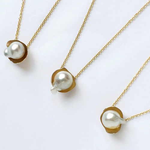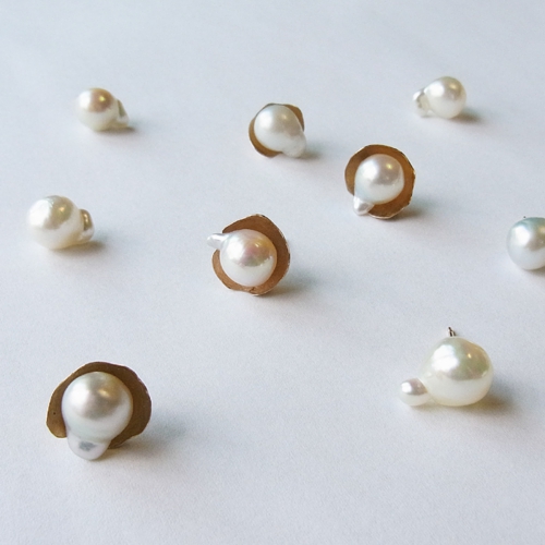 バロックパールとは変形した形状のパールのことを意味します。真珠貝の中から自然に生まれたカタチ。世界に2つとして同じ形が無いのがバロックパールの魅力です。真珠貝の中から美しいパールが誕生するように、ゴールドの殻からパールが生まれる瞬間をイメージした殻付きの [ birth ] と、赤ちゃんをイメージした殻なしの [ baby ]の2タイプを展開しています。パール・殻ともに形状が異なるため、全てが1点ものとなります。