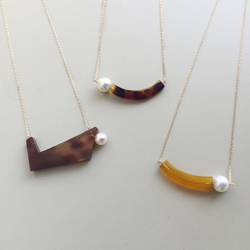 yull.×大澤鼈甲コラボレーションシリーズ。べっ甲の眼鏡を作る時に出てしまう端材。その端材の形に美しさを見い出しジュエリーへと生まれ変わらせました。パールと組み合わせることでべっ甲の印象がぐっと現代的にそして華やかに。どの年代の方にも身につけられるジュエリーです。端材は1つ1つの形状が異なるため、ほとんどのものが一点もののデザインです。
