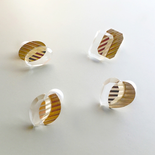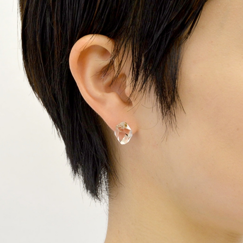 宝石に模様がついていたら… そんな思いから生まれたピアス。ストライプ模様の宝石のlayerと、模様が飛び出したようなイメージのslideの2展開のグラフィカルなデザイン。身につけると水晶がさり気ない輝きを放ちます。石はオリジナルでカット。やや大振りなデザインですが、無色透明の石なのでピアスだけが主張することなく身につけられます。大きめのパールキャッチで後ろ姿も美しく、キャッチをフロントにもってくることで耳たぶからさり気なくゴールドのプレートが顔を出します。石の輝き方も表と裏で変わるのでデザインも変化して見えます。